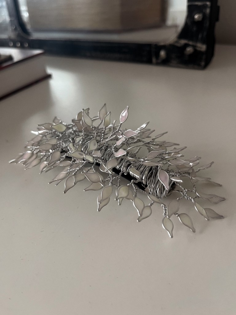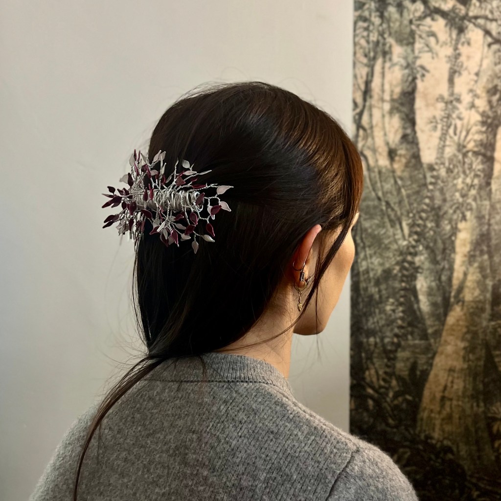 Cette collection d’accessoires artisanaux associe le fil de fer et la résine pour créer des pièces uniques aux formes organiques et délicates. Chaque barrette et broche est façonnée à la main, jouant sur la transparence, les textures et les contrastes. Inspirées par la nature et l’imaginaire, ces créations allient finesse et légèreté, apportant une dimension poétique à celui ou celle qui les portent.