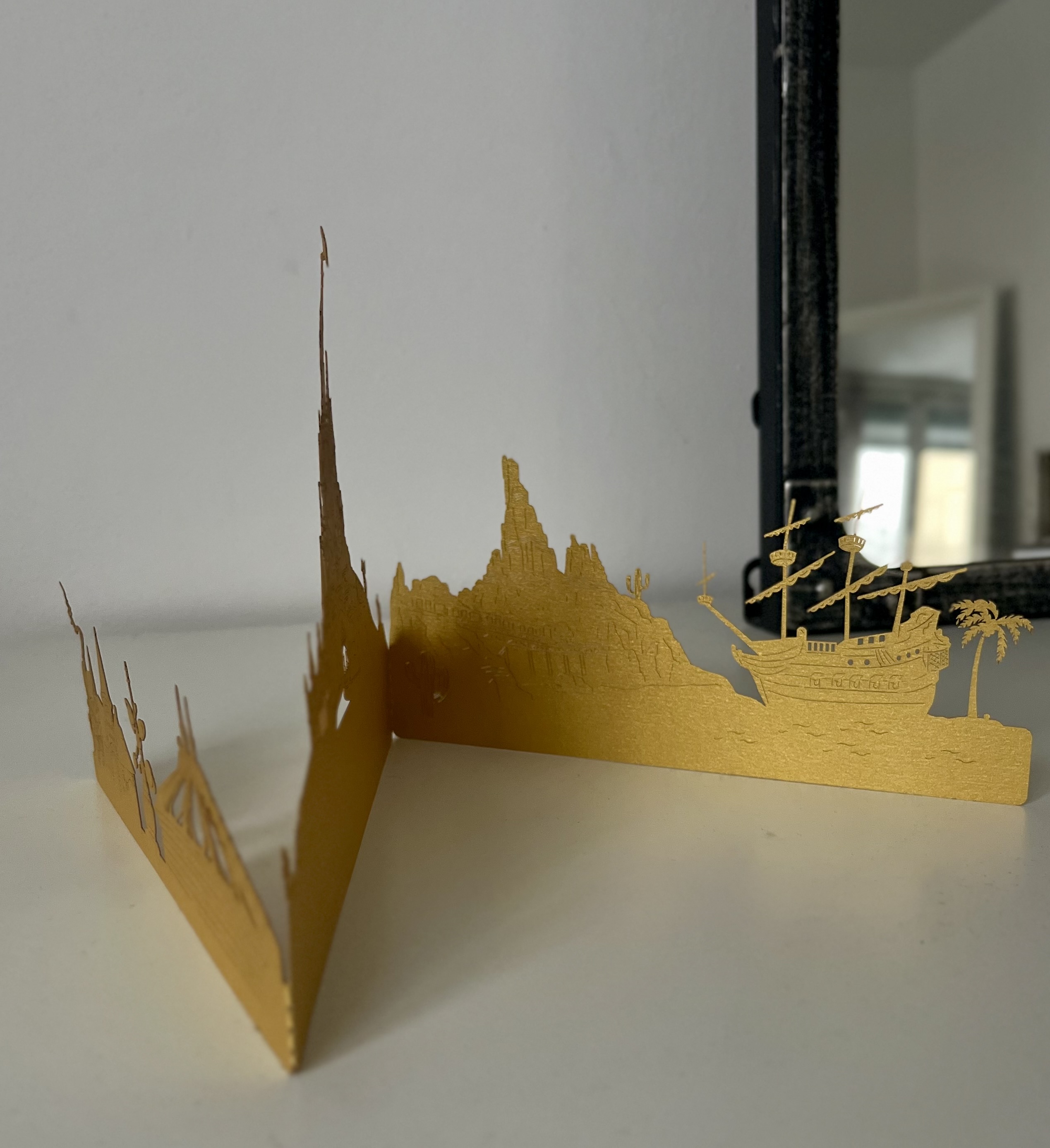 Chaque carnet, marque-page, et panorama en découpe laser que je propose est le fruit d’un travail de précision et de créativité. Mes dessins, élaborés avec soin sur Illustrator, sont pensés pour exploiter tout le potentiel de la découpe laser. La machine interprète ensuite les lignes et détails de chaque design pour en découper minutieusement le papier, révélant des formes et motifs uniques.